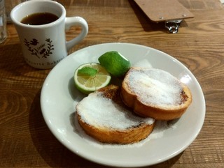 朝食に人気のフレンチトースト。レモンをかけて頂くという、このお店ならではの一品。