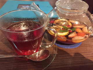 北欧ではポピュラーなリンゴベリーなど、3種類のベリーが入ったフルーツティー。ポットに浮かぶフルーツがカラフルで見た目にもおしゃれ。