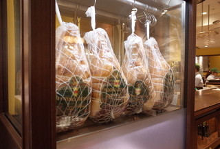 このようにハムがディスプレイされていると、素直に「すごいな~」と感心します。イタリア人の創業者は「最高の生ハムを気軽に食べていただきたい」という思いから、このお店を作ったそう。