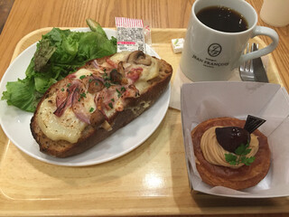 シェフの名が付けられた「ジャン・フランソワセット」は、食事パンとスイーツパン、そしてサラダにドリンクという満足感のある内容。