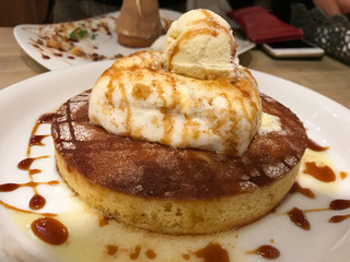 バターやシロップをのせると、さらに美味しさアップ。お得な価格で2枚注文することもできますよ。