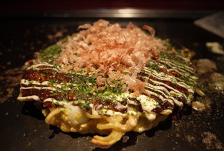 料理:美味いっ!お好み焼きはザ・お好み焼きって感じのやつです。厚さは1.5cmぐらい。食べるとキャベツのシャキシャキ感とカリッカリの豚肉(´∀`*)そして隠し味の紅生姜!これが美味いですよね〜。紅生姜って大事だなって思いました!