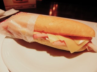 人気No. 1のパニーノだそうです。パルマ産生ハム、ブリーチーズ、トマト、ルーコラ、アルバ産白トリュフオイルが入ってるサンドイッチです。温かいパン生地にたっぷりの具材が口の中でミックスされ美味しいですマジで美味いですやばいです。
