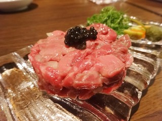 荒挽きでしっかり食感を残した生肉。キャビアもよく合います。高級なお肉からコスパの良いお肉までいろいろ楽しめるお店です。ごちそうさまでした。