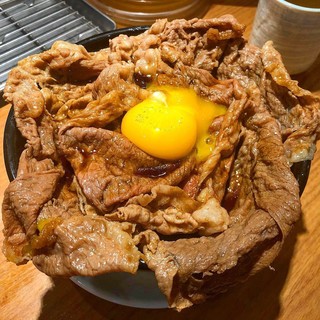 インパクト抜群の「牛しゃぶすきめし」。丼が見えないほど、たくさんの肉が盛り付けられています。