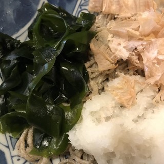 具材はおろし大根、花がつを、わかめである。