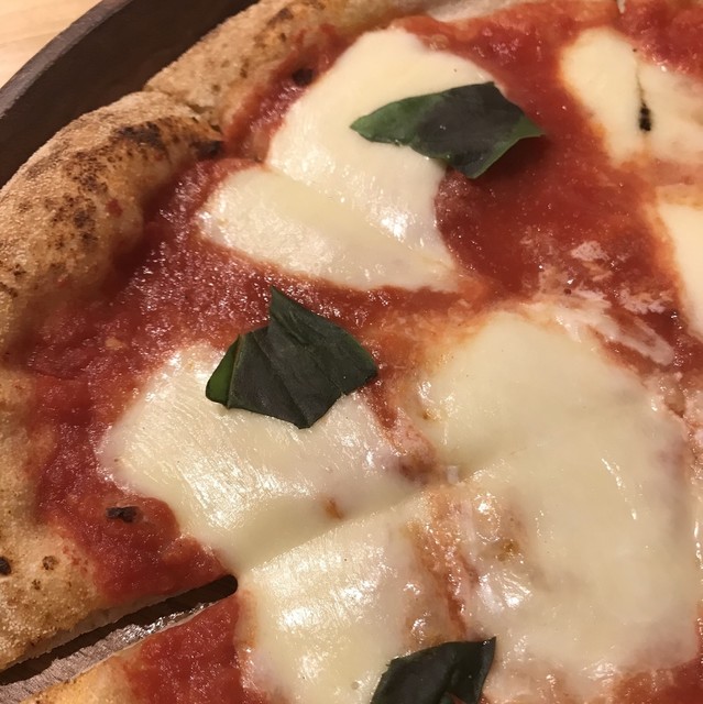 マルゲリータはモッツァレラチーズ、トマトソース、バジルのシンプルなものである。