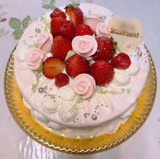 こちらのケーキは、ピンクのバラが飾られた華やかな見た目がとてもおしゃれ!