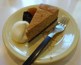 チーズの濃厚な味の中にバナナの酸味と甘みが優しく、予想通りシナモンのスパイシーさが全体を引き締めていました。更にリンゴとプラムのコンポートの甘酸っぱさ、生クリームとシナモンの調和。シンプルで奥行きがある、大人の味です。