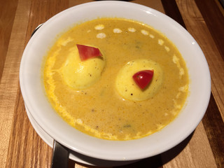 ゆで卵がコロンと入っている「エッグ・カレー」。他のカレーと比べて甘口となっており、辛いものが苦手な人におすすめです。マトンやキーマカレーも人気ですよ。