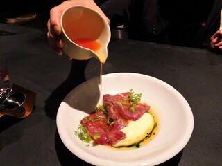温度にこだわったシェフの料理と、ソムリエの中村さんの合わせる遊び心あふれるペアリング。目の前で繰り広げられる調理風景のライブ感。フレンドリーなスタッフ。良心的な価格設定。仕事でもプライベートでも誰とでもどんな状況でも楽しい食事になると思います。