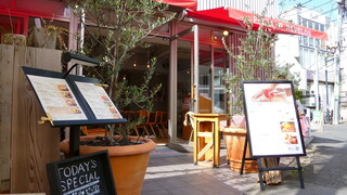 原宿駅から徒歩10分、表参道の裏路地にあるビルの地下1階にあり、昼と夜とで違う雰囲気が楽しめるお店です。