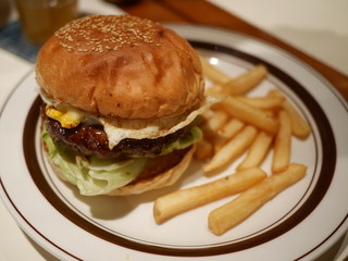 天然酵母パンを使ったバンズは、カリッと焼かれてて香ばしい~。ソースはあんまり強烈ではなく、まろやかな酸味と甘味。パテはジューシーさは欠くものの、野菜とのバランスが良し。アボカドの存在がキーになっていて、マイルドな味わいに昇華。