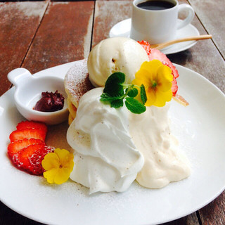 季節によって変わる期間限定のパンケーキが好評ですよ。