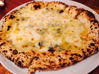 クワトロフォルマッジはチーズたっぷりでとても美味しかったです!生地まで美味しい。さすが看板ででかでかと書いてあるだけのことはあります。