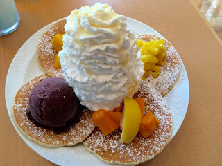 パイナップルの酸味と生クリームの甘さがちょうどいい。こんなに生クリームがたくさんだけど…2人でペロリです。