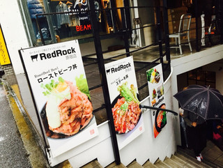 東京メトロ明治神宮前駅から徒歩6分のところにある【レッドロック 原宿店】。原宿でガッツリお肉を食べたいときにお勧めの、ローストビーフ丼やステーキ丼が評判のお店です。