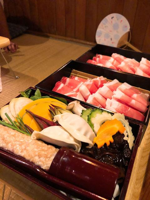 おすすめはアグー豚のしゃぶしゃぶで、豚肉と沖縄の野菜もたっぷりとセットされています。