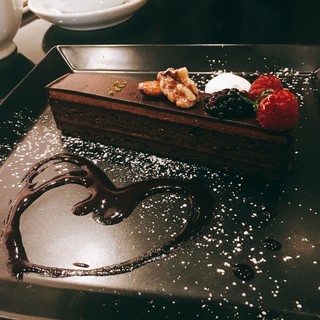 前は通るけど、あまりカフェ利用したことがなく・・・今回も、ガトーショコラを注文してみました。美味しかった!!甘さとしっとり感がちょうどよく、かなり私の好きなガトーショコラです。ガトーショコラってしっとり感が難しいと思うので、好みのしっとりに出会えると、幸せです。