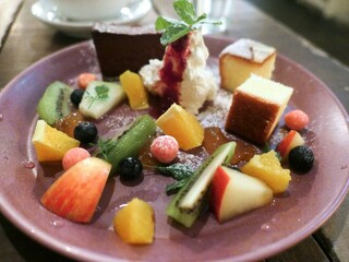 ケーキやパフェ、フルーツとケーキがワンプレートで楽しめる「ひとさらの至福」など、スイーツの種類も豊富。