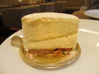 タルトはザクザクの固めなので、ナイフとフォークを使ってざくっと切っていただきます。ムースはとても滑らかで、口にするとカフェの風味が香ります。疲れた体に甘さが染み渡りますね~ 味の変化が考えられた一品でしたね。