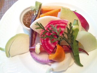 こちらの定番メニューは彩り鮮やかな「鎌倉野菜のバーニャカウダ」。瑞々しい野菜はソースをつけなくても、素材そのものの味が美味しいと評判です。