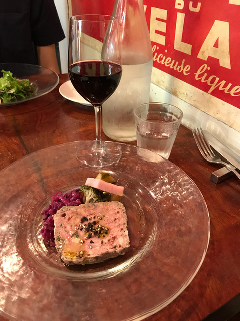 前菜は、パテとシコイワシのフリッタ―。今日のメイン魚は、スズキの焦がしバター。カリカリ食感と、バターの香ばしさとが楽しめる、肉は、ハラミステーキ。これが柔らかく、味があるし、量も充分でした。美味いもの食べる連休、なかなかなもんです。