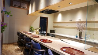 高級感漂う一枚板のカウンターでは、大人のデートを楽しめそうですね。自然派日本料理をコースなどで味わえると人気です。