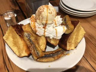 バナナのホットケーキは、厚みがあり、かなり食べ応えありそうでした。シナモンがかかってたので、嫌いな人は注意です!