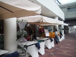 横浜ベイクォーターの2Fにある、パンケーキで名高いカフェ「バター 横浜ベイクォーター (Butter)」。席数は88席。中にはオープンテラス席も。