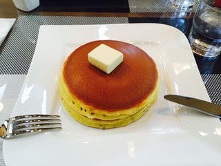 定番の「プレーンパンケーキ」は、生クリームとバターそして塩が散りばめられた基本のパンケーキ。