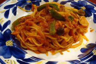 ナポリタンが出てきました。具らしいものが見当たりませんが、刻んで細かくなっているのです。ニンジンと挽肉かな。パスタは細くて固め。フライパンで炒めた独特の香ばしさがあります。私はこれが家庭の味に近くて大変親近感があります。