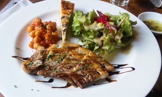 今日の「ワンプレートランチ」は「豚肉のバルサミコ酢がけ」。豚肉が柔らかくて感動!そしてバルサミコ酢もよく合う!付け合わせの豆の煮物やキッシュ、サラダなどもとても美味しい♪