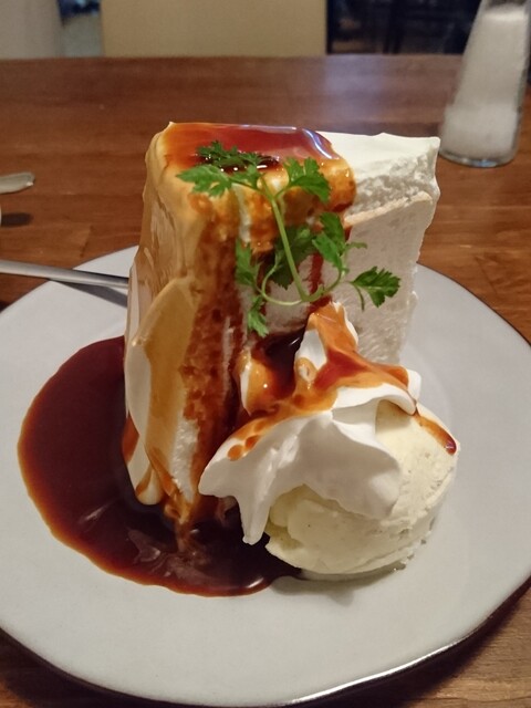 少し温めたことでふんわりとした食感となめらか感が更に増しました!!自家製キャラメルソースが結構苦味が強め。でもこの苦味がチーズケーキの優しい甘さにうまい具合に織合わさって絶品♪