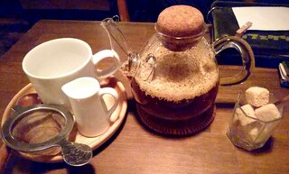 エルダーフラワーを置いているお店は少ないので、これは嬉しいです。ガラスポットに紅茶とたっぷりのエルダーフラワーが浮かんで見た目もかわいい。これまた濃厚チーズケーキに良く合う。マスカットのような、はたまた洋梨のような花の風味が広がります。