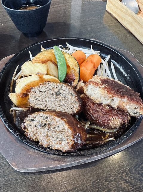 当店では選び抜かれた黒毛和牛を塊り肉からミンチを挽いております。固体識別番号のある塊からミンチを挽くことにより、「どこで育ったか?」「どの牛の?」「どの部位が?」が明確になり、安心してお食事して頂けるのが当店のこだわりです。ハンバーグだけではなく、ステーキに関しても固体識別番号がしっかりと管理し表示しております。また、お肉やハンバーグだけでなく、ソース、海老フライ、コロッケ、デザートに至るまで、味...・手作りにこだわっており、当店のお料理を食べる為に、遠方からご来店になるお客さまもいらっしゃいます。小さなお子様からご年配の方まで、安心して寛げるお座敷や個室を完備。どなたでも快適にお食事して頂けるよう、お箸もご用意しております。黒毛和牛と松阪豚をMIXした、最強のハンバーグ!お肉本来の肉汁の甘さ・旨さを是非堪能してください!お客様のご来店心よりお待ちしております。