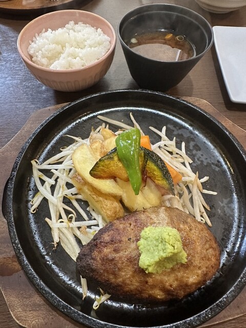 ごはんと味噌汁はおかわり自由で、ハンバーグ50グラム増量か野菜サラダ...