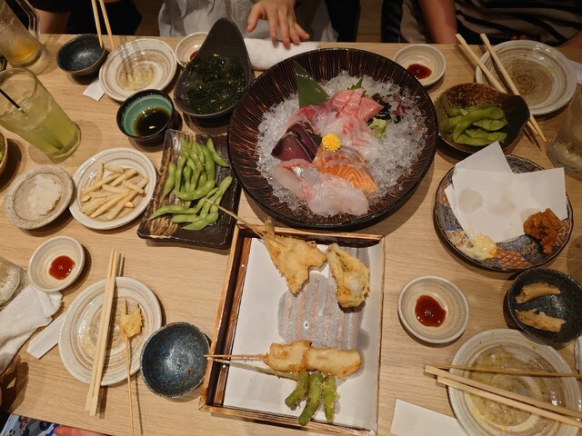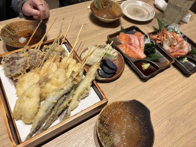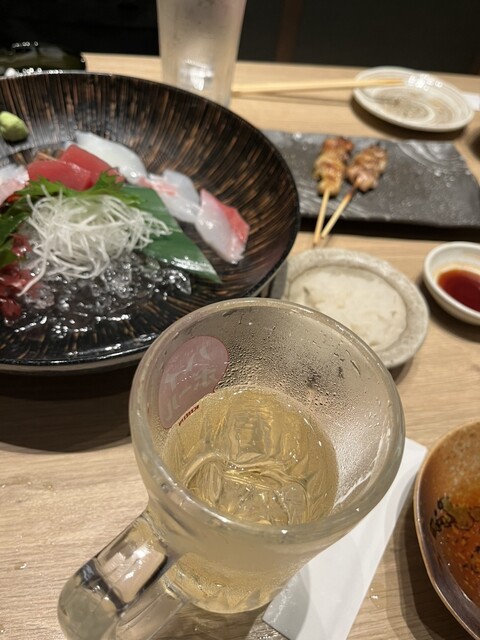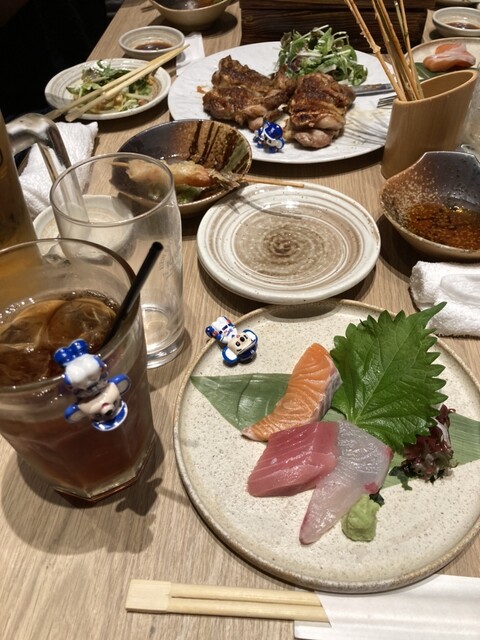 友人との飲みでお邪魔させていただきました!!事前に食べログで予約、飲み放題クーポンを使用させていただいております!!メニューは串や、刺身、一品料理等なんでも揃ってます✨刺身盛りと日本酒の熱燗最高でした...