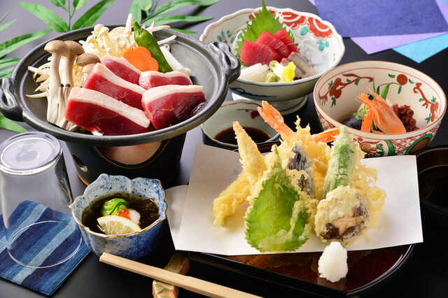 江戸中期、文化文政の時代に、お伊勢参りの旅人宿として創業して以来200年。伝統の味を守り、割烹としても地元の食通に愛されてきました。名産・松阪牛のすき焼き、しゃぶしゃぶをはじめ、四季折々の食材を使った会席料理、冬の名物料理・鴨鍋など、忘新年会はもとより、ご接待や親しい友人同士での食事会などにも、ランチサービスも大好評です。どうぞお気軽にご利用下さい。