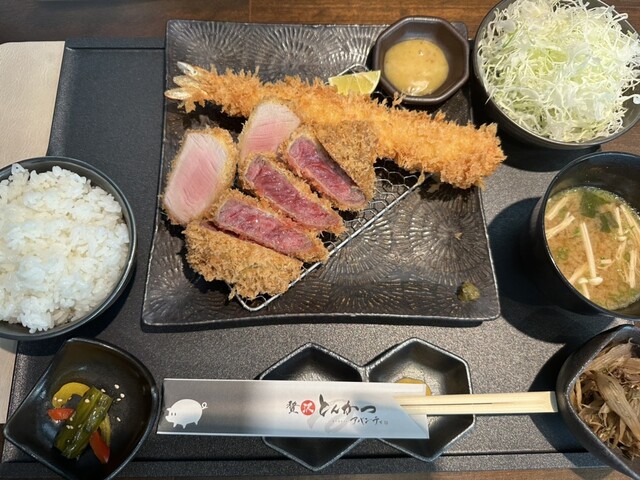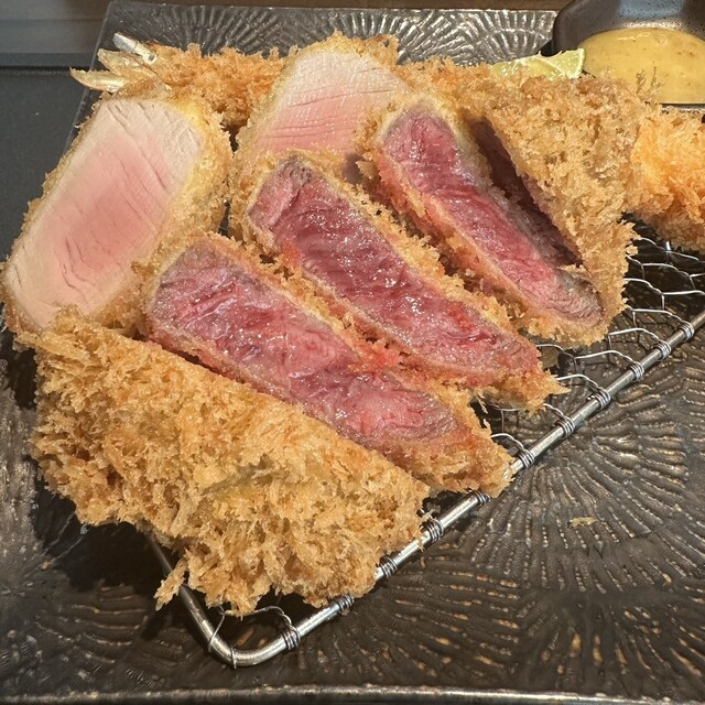 雪室熟成豚シャト1ケ、松阪牛カツ 65g、大海老フライ1本