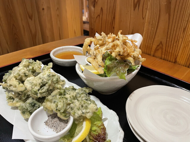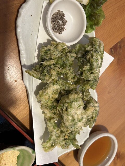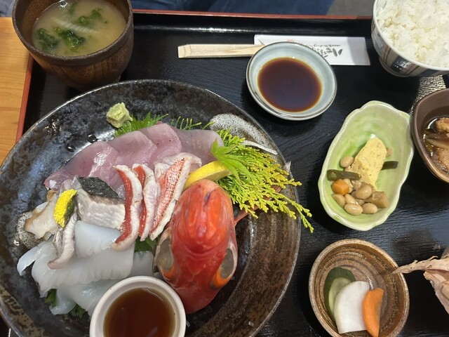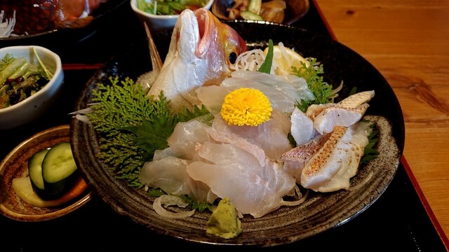 本日の鮮魚お刺身盛り合わせ「生ウニ」を楽しみにしていたのですが、ウニは終わったとのこと 通常のお刺身盛り合わせ・焼き魚盛り合わせ・あおさのおにぎり・あおさのお味噌汁・あおさの天ぷら・煮干しラーメンなど...