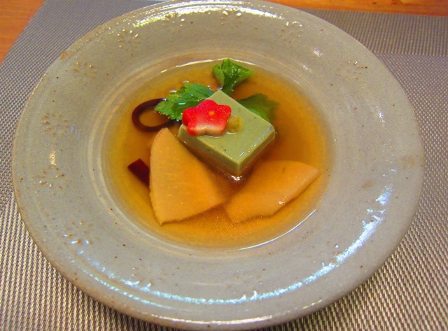ヨモギの胡麻豆腐の葛(くず)ながしです。