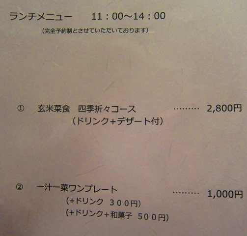 ドリンク・デザートが付いた玄米採食四季折々コース 2,800円、