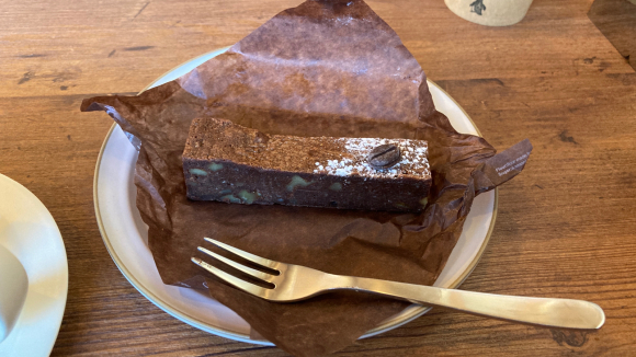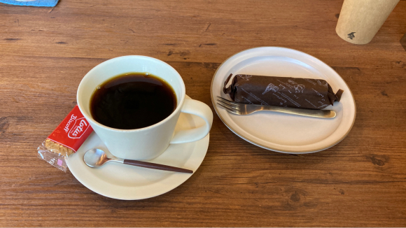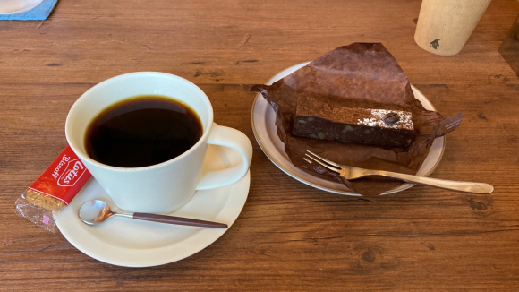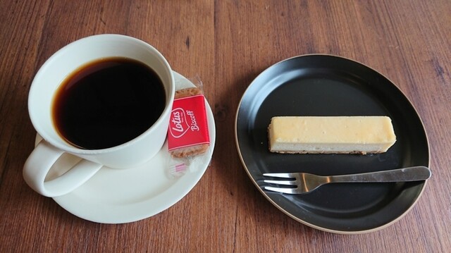 季節のコーヒー・ハロウィンブレンド(450円)と季節限定・キャラメルマロンのチーズケーキ(300円)を注文。