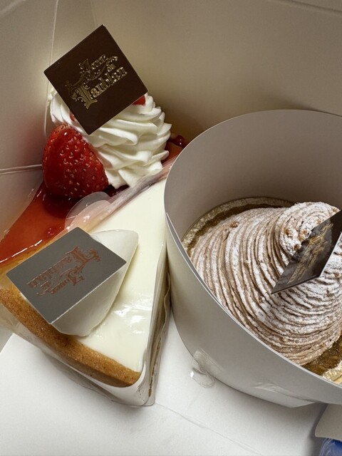 チーズケーキ、モンブラン、洋梨のタルト、マカロンを購入。