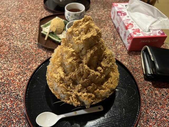 ふわふわのかき氷にきな粉と黒蜜とあんことアイスが中にたくさん入っていてとても美味しかったです。駐車場も比較的多く回転...