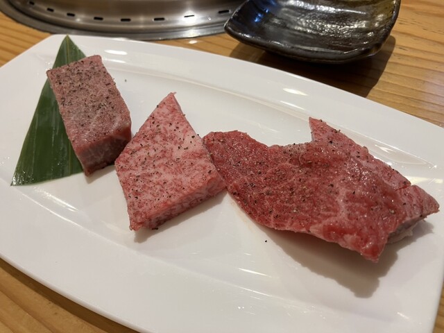 3種盛りや牛刺しに後輩は大満足、ただ、お互い歳なのか少しで十分だね。