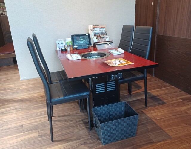 店内に入ると正面に精肉の販売スペース、左奥に進むとテーブルとお座敷があります。