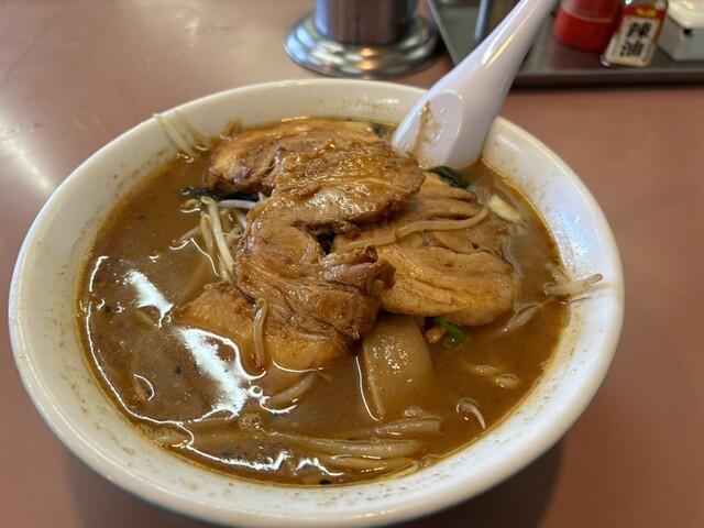お店の外観は年季の入った「ラーメン・ギョーザ」の看板に真っ赤な暖簾が映える、懐かしい食堂スタイル。店内はカウンター中心で、目の前で鍋を振るう臨場感と香りに食欲をそそられます。 ... 詳細を見る