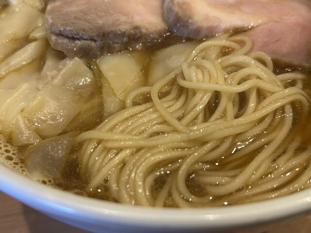 スープは、三重県産の錦爽鷄を使用した動物系のスープに、数種類の煮干しを合わせたもので、煮干しの苦味が効いてます。そこに伊勢蔵さんの醤油...